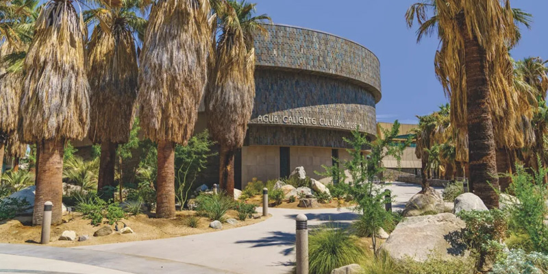 - L'Agua Caliente Cultural Plaza, récemment ouverte à Palm Springs, offre une expérience immersive unique dans la culture de la tribu Agua Caliente Band of Cahuilla Indians. Ce complexe de 23 000m² au cœur du centre-ville comprend le Agua Caliente Cultural Museum, une esplanade extérieure, une exposition permanente de plantes indigènes et de formations rocheuses baptisée Oasis Trail, et le luxueuxSpa at Séc-he. Le musée présente des expositions interactives sur l'histoire, la culture et les traditions modernes des Agua Caliente, tandis que l'Oasis Trail offre une promenade éducative inspirée du site d’Indian Canyons sur les terres ancestrales de la tribu.